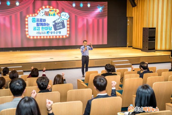 ±¤ÁÖÀºÇà º»Á¡ KJ»ó»ý¸¶·ç¿¡¼´Â ¼ÛÁ¾¿í ÀºÇàÀå°ú Á÷¿øµéÀÌ ÇÑÀÚ¸®¿¡ ¸ð¿© ÀÏ»óÀÇ ¹«°Ô¸¦ Àá½Ã ³»·Á³õ°í ÇÔ²² ¿µÈ¸¦ °¨»óÇϰí, ¼ÒÅëÀ» ÅëÇØ ÈÇÕÀ» ´ÙÁö´Â ½Ã°£À» °¡Á³´Ù.