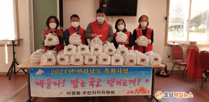 ¹ÌÆòµ¿ÁÖ¹ÎÀÚÄ¡À§¿øÈ¸´Â Á¶¼Õ°¡Á¤À̳ª ÇѺθð°¡Á¤ 40¼¼´ë¸¦ ¼±Á¤Çϰí Áö³ 9¿ùºÎÅÍ ¸ÅÁÖ ¸ñ¿äÀÏ ¹ÌÆòµ¿ÁÖ¹ÎÀÚÄ¡À§¿øÈ¸ À§¿øµéÀÌ ¼Õ¼ö ¸¸µç ¼öÁ¦ ¹Ø¹ÝÂù°ú ¹ÐŰƮ ±×¸®°í ġŲ, ÇÇÀÚ¿Í °°Àº ¾î¸°ÀÌ ±âÈ£½ÄǰÀ» °ÝÁÖ·Î ´ë»ó °¡Á¤¿¡ Á÷Á¢ ¹è´ÞÇß´Ù. 11¿ù±îÁö 12¹øÀÇ ¹Ø¹ÝÂù Àü´ÞÀ» ¸¶Ãưí, ÇâÈÄ 4¹øÀÇ Ãß°¡ Áö¿øÀ» ¾ÕµÎ°í ÀÖ´Ù.