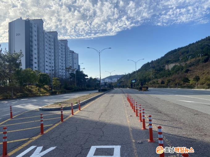 µµÃ»ÀÔ±¸ »ç°Å¸®~¸ñÆ÷½Ã¹Î¹®ÈüÀ°¼¾ÅÍ »ç°Å¸® ±¸°£(L=550m)Àº °ú°Å ¹ö½ºÀü¿ëÂ÷·Î¸¦ À§ÇÑ È´ÜÇü Á߾Ӻи®´ë°¡ Áß¾Ó ¾çÃøÀ¸·Î ¼³Ä¡µÅ Â÷·® ÁøÇàÀÇ È¥¼±À» ¾ß±âÇϰí, ÀÌ·Î ÀÎÇÑ ±³Åë»ç°í°¡ Àæ´Ù.