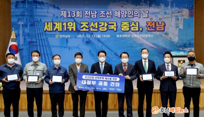 Àü³²µµ´Â 13ÀÏ ¸ñÆ÷´ëÇб³ ½ÅÇØ¾ç»ê´ÜÄ·ÆÛ½º¿¡¼ µµ³» Á¶¼±․ÇØ¾ç±â¾÷ ´ëÇ¥ ¹× ³ëµ¿ÀÚ, À¯°ü±â°ü, ÁöÀÚü °ü°èÀÚ 70¿© ¸íÀÌ Âü¼®ÇÑ °¡¿îµ¥ ¡®Á¦13ȸ Àü³² Á¶¼±¡¤ÇؾçÀÎÀÇ ³¯¡¯À» °³ÃÖÇϰí, Á¶¼±Àη ºÎÁ· ÇØ¼Ò¸¦ À§ÇÑ ´ëÁ¤ºÎ °øµ¿°ÇÀǹ®À» äÅÃÇß´Ù.