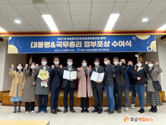¼Û°æÈ¯ ¼¾ÅÍÀå°ú ´õºÒ¾î ¿©¼ö °Å¹®µµÇØÇ³¾¦¿µ³ó¹ýÀÎ ³²ÁÖÇö ´ëÇ¥´Â ´ëÅë·É ǥâÀ», Àü³²³óÃÌÀ¶º¹ÇÕ»ê¾÷Áö¿ø¼¾ÅÍ ±è´ÙÇý º»ºÎÀå°ú ¿©¼ö ³ó¾÷ȸ»ç¹ýÀÎ ÇâÀ¯¹Ì°¡¢ß ÇÑÇØ°æ ´ëÇ¥´Â Àå°ü ǥâÀ» ¼ö»óÇÏ¿´´Ù.