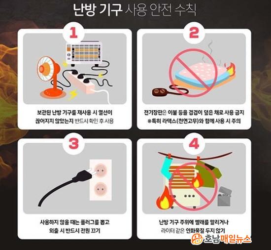 ÇÑÆí, ±¤¾ç¼Ò¹æ¼ °ü°èÀÚ´Â ¡°Äڷγª19 È®»êÀ¸·Î ÁְŽü³ µî ½Ç³»È°µ¿ÀÌ ¸¹¾Æ °Ü¿ïö Àü±âÀåÆÇ µî ³¹æ¿ëǰ »ç¿ë ºÎÁÖÀÇ·Î ÀÎÇÑ ÈÀç°¡ ¸¹ÀÌ ¹ß»ýÇÑ´Ù¡±¸ç ¡°Àü±âÁ¦Ç°À» »ç¿ëÇÒ ¶§´Â ¹Ýµå½Ã ±Ô°ÝÁ¦Ç° »ç¿ë ¹× ¾ÈÀü¼öÄ¢À» öÀúÈ÷ ÁöÄÑ °Ü¿ïö ÈÀ縦 ¿¹¹æÇÏ¿© ÁÖ½Ã±æ ¹Ù¶õ´Ù¡±°í ÀüÇß´Ù.