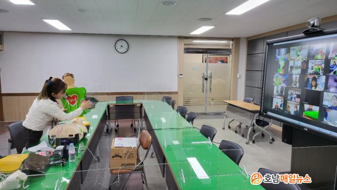 À̹ø ±³À°Àº »çÀü¿¡ ¿ì¸® Áý ¾ÈÀüÁöÅ´ÀÌ ÁֺηΠ±¸¼ºµÈ ±¤¾ç½Ã ³ì»ö ¾î¸Ó´Ï ¿¬ÇÕȸ ȸ¿øÀ» ´ë»óÀ¸·Î ¼±Âø¼ø Âü°¡½ÅûÀ» ¹Þ¾Æ ½ÉÆó¼Ò»ý¼ú üÇèŰƮ(dz¼± ¸¶³×Ų ¹× ÀÚµ¿½ÉÀåÃæ°Ý±â) 20°³¸¦ º¸±ÞÇÑ ÈÄ ¿ø°ÝÈ»ó ÇÁ·Î±×·¥(ZOOM)À» Ȱ¿ëÇÑ ºñ´ë¸é ¿Â¶óÀÎ ½ÉÆó¼Ò»ý¼ú°ú ÇÔ²² ÀÚµ¿½ÉÀåÃæ°Ý±â »ç¿ë¹ý ±³À°ÀÌ ÁøÇàµÆ´Ù.
