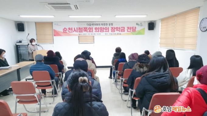 Á¤¿¬¿Á ȸÀåÀº ¡°Äڷγª19·Î ¸ðµÎ°¡ Èûµç ½Ã±âÀÌÁö¸¸ ¹Ì·¡ ¼øÃµ½ÃÀÇ ±âµÕÀÌ µÉ û¼Ò³âµéÀÇ ²ÞÀÌ Å©°í ÀÚ¶ó ¼øÃµ½Ã ¹ßÀüÀÇ ¸¶Áß¹°ÀÌ µÇ±â¸¦ ¹Ù¶ó´Â ¸¶À½À» ÀüÇϱâ À§ÇØ ÀåÇбÝÀ» Àü´ÞÇÏ°Ô µÆ´Ù.¡±¸ç, ¡°¾ÕÀ¸·Îµµ µµ¿òÀÌ ÇÊ¿äÇÑ °÷¿¡ ¼Õ±æÀ» ³»¹Ì´Â µ¥ Àû±Ø ¾ÕÀå¼°Ú´Ù.¡±°í ¸»Çß´Ù.