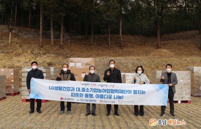 ÇÑÆí, ´ã¾ç±ºº¹ÁöÀç´Ü °¼º³² ÀÌ»çÀåÀº ¡°Áö¿ª ³» ¾î·Á¿î ÀÌ¿ôÀ» À§ÇØ Å« ÈÄ¿øÀ» ÇØÁֽŠLG»ýȰ°Ç°°ú ´ë‧Áß¼Ò±â¾÷ ³ó¾î¾÷Çù·ÂÀç´Ü, (»ç)Èñ¸ÁÀ»³ª´©´Â»ç¶÷µé¿¡ Áø½ÉÀ¸·Î °¨»çÇÏ´Ù¡±¸ç ¡°ÈÄ¿ø ¹ÞÀº ¹°Ç°Àº Áö¿ª ³» ¼Ò¿Ü°èÃþ¿¡°Ô ¼ÒÁßÈ÷ »ç¿ëµÉ °Í¡±À̶ó°í ÀüÇß´Ù.