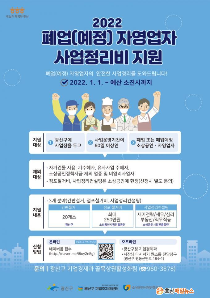 À̹ø »ç¾÷Àº ±¤»ê±¸°¡ Áö³ÇغÎÅÍ ÃßÁøÇÑ ¡®»çÀå´Ô ´Ù½Ã¼±â »ç¾÷¡¯ÀÇ ÀÏȯÀ¸·Î, Äڷγª19 Àå±âÈ µîÀ¸·Î ¾î¿ ¼ö ¾øÀÌ Æó¾÷À» °áÁ¤ÇÑ ÀÚ¿µ¾÷ÀÚÀÇ ¡®½ÇÆÐ ºñ¿ë¡¯ ºÎ´ãÀ» ÁÙ¿©ÁÖ±â À§ÇÑ ÃëÁö·Î ¸¶·ÃµÆ´Ù. ´ë»óÀº ±¤»ê±¸¿¡ »ç¾÷ÀåÀ» µÎ°í 60ÀÏ ÀÌ»ó ¿µ¾÷ÇÏ´ø Áß Æó¾÷Ç߰ųª Æó¾÷À» ¾ÕµÐ ¼Ò»ó°øÀÎÀÌ´Ù.