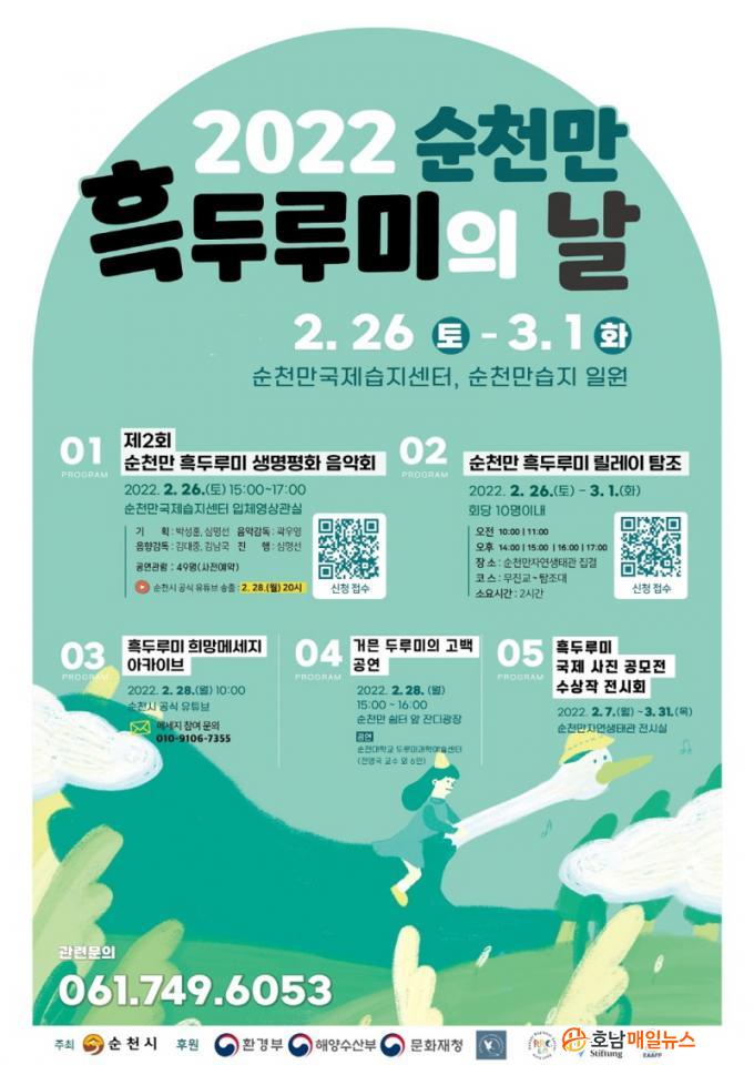 À̹ø Çà»ç¿¡´Â ¡ã2¿ù 26ÀÏ ¿ÀÈÄ 3½Ã ¼øÃµ¸¸±¹Á¦½ÀÁö¼¾ÅÍ ÀÔü¿µ»ó°ü¿¡¼ Á¦2ȸ ¼øÃµ¸¸ ÈæµÎ·ç¹Ì »ý¸íÆòÈ À½¾Çȸ°¡ ¿¸®°í, ¼øÃµ¸¸½ÀÁö ÀÏ¿ø¿¡¼ ¡ã2¿ù 26ÀϺÎÅÍ 3¿ù 1ÀϱîÁö ¼øÃµ¸¸ ÈæµÎ·ç¹Ì ¸±·¹ÀÌ Å½Á¶ Åõ¾î, ¡ã2¿ù 28ÀÏ ¿ÀÈÄ 3½Ã ¡®°Å¹È µÎ·ç¹ÌÀÇ °í¹é¡¯ °ø¿¬, ¡ãÈæµÎ·ç¹Ì ±¹Á¦ »çÁø °ø¸ðÀü ¼ö»óÀÛ Àü½Ãȸ µî ÇÁ·Î±×·¥ÀÌ ´Ùä·Ó°Ô ÆîÃÄÁø´Ù.