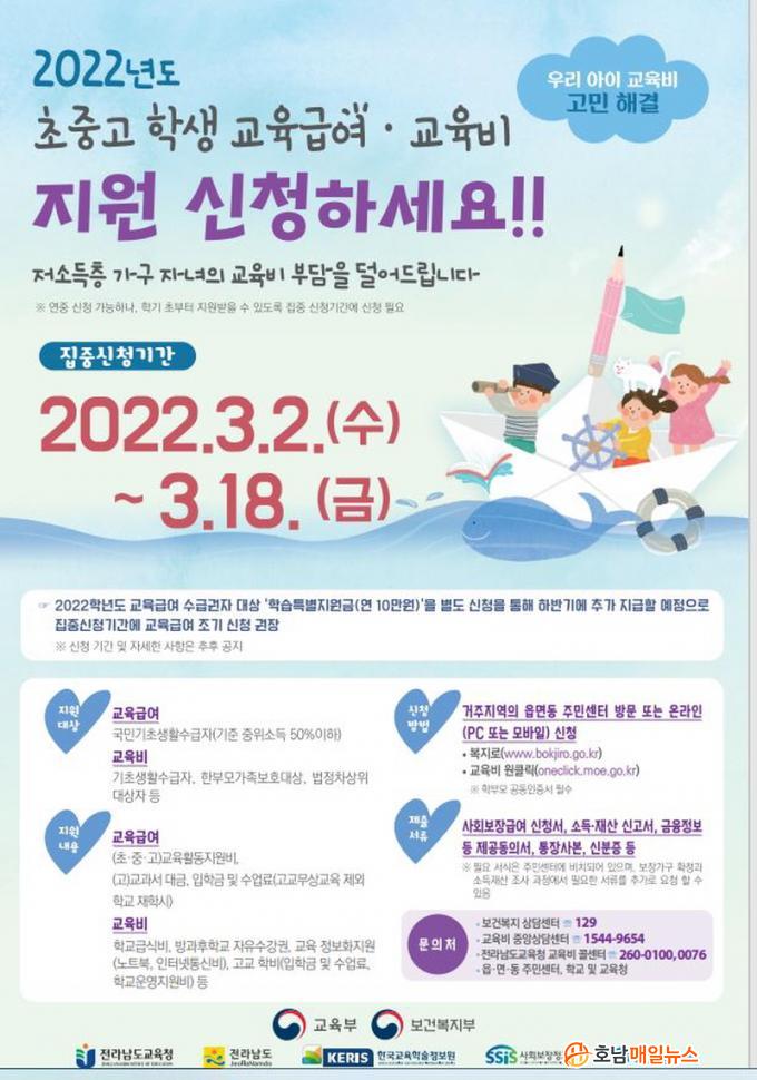 ÇÑÆí, ±³À°±Þ¿©¡¤±³À°ºñ ½Åû¿¡ ´ëÇØ ±Ã±ÝÇÑ »çÇ×Àº À¾¡¤¸é¡¤µ¿ Áֹμ¾ÅÍ, Áß¾Ó»ó´ã¼¾ÅÍ(1544-9654) ¶Ç´Â Äݼ¾ÅÍ(º¸°Çº¹ÁöºÎ 129), Àü³²±³À°Ã»(061-260-0100, 0076)¿¡ ¹®ÀÇÇÏ¸é µÈ´Ù.
