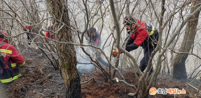ÁöÈÖº»ºÎ°¡ »ê¸²Ã» ¹× Àü³²µµ¿¡ ±ä±Þ ¿äÃ»ÇØ Ã⵿ÇÑ 15´ëÀÇ ÁøÈ Çï±â°¡ Àα٠Àú¼öÁöÀÇ ´ã¼ö¸¦ ÅõÇÏÇÏ¿© Å« ºÒ±æÀÌ ÀâÈù µí ÇßÀ¸³ª µÎ²®°Ô ½×ÀÎ ³«¿±¿¡ ºÒ¾¾°¡ ¼û¾îµé¾î Àç¹ßÈµÇ¸é¼ Àå±âȵƴÙ.