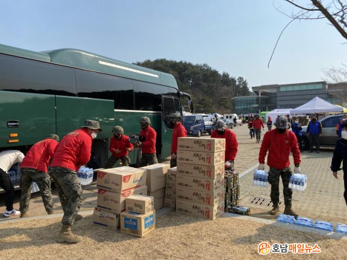 8ÀÏ ´ã¾ç±º ÀÚÄ¡Çõ½Å±¹ÀåÀ» ºñ·ÔÇÑ ±º Á÷¿øµéÀº Á÷Á¢ ´Þ¼º±º°ú ¿ïÁø±º »êºÒ´ëÃ¥º»ºÎ ÇöÀå¿¡ ¹æ¹®ÇØ Áö¿ø ¹°Ç°À» Àü´ÞÇß´Ù. ¹°Ç°Àº »êºÒÇöÀå¿¡¼ »êºÒÁøÈ¸¦ À§ÇØ ¾Ö¾²°í ÀÖ´Â ÁøÈ´ë¿ø¿¡°Ô Àü´ÞµÉ ÇÖÆÑ, »ý¼ö, »§, »îÀº °è¶õ µîÀ¸·Î ±¸¼ºµÆ´Ù.