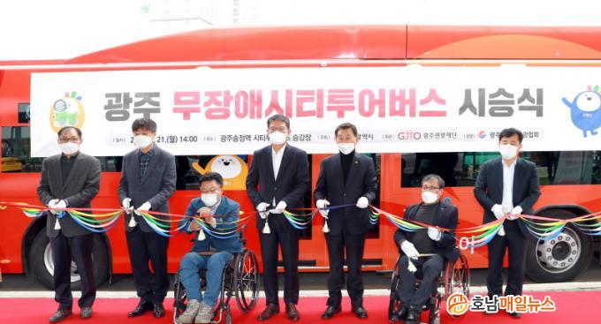 ±è¼º¹è ½Ã °ü±¤ÁøÈï°úÀåÀº ¡°¹«Àå¾Ö ½ÃƼÅõ¾î Àü¿ë¹ö½º µµÀÔÀ¸·Î ±¤ÁÖ¸¦ ¿©ÇàÇÏ´Â °ü±¤¾àÀÚÀÇ ¹°¸®Àû Á¢±Ù¼ºÀÌ °³¼±µÉ °ÍÀ¸·Î ±â´ëÇÑ´Ù¡±¸ç ¡°±¤ÁÖ¸¦ ´ëÇ¥ÇÏ´Â °ü±¤ ¾ÆÀÌÄÜÀ¸·Î ÀÚ¸®ÀâÀ» ¼ö ÀÖµµ·Ï º¸´Ù ´Ù¾çÇÑ ÄÜÅÙÃ÷¸¦ ´ã¾Æ³»°í Àû±Ø ¾Ë¸®´Âµ¥ Èû¾²°Ú´Ù¡±°í ¸»Çß´Ù.