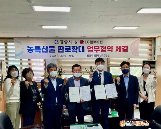 À̳¯ Çù¾à½Ä¿¡´Â Á¤»ó¹ü ±¤¾ç½Ã ³ó¾÷±â¼ú¼¾ÅͼÒÀå°ú Á¶¿ë´ë ¢ßLGÇï·ÎºñÀü ¾Æ¶ó¹æ¼Û ÃѰý±¹Àå µî ÁÖ¿ä °ü°èÀÚµéÀÌ Âü¼®Çß´Ù. ¾÷¹«Çù¾àÀ» ÅëÇØ ±¤¾ç½Ã¿Í ¢ßLGÇï·ÎºñÀüÀº ¾Æ·¡ ³»¿ë Áß½ÉÀ¸·Î ±¤¾ç½ÃÀÇ ¿ì¼ö ³ó¼öƯ»ê¹° ¼Òºñ ÃËÁø°ú ÆÇ·Î È®´ë¸¦ À§ÇØ Àû±ØÀûÀ¸·Î Çù·ÂÇÒ °ÍÀ» ¾à¼ÓÇß´Ù.