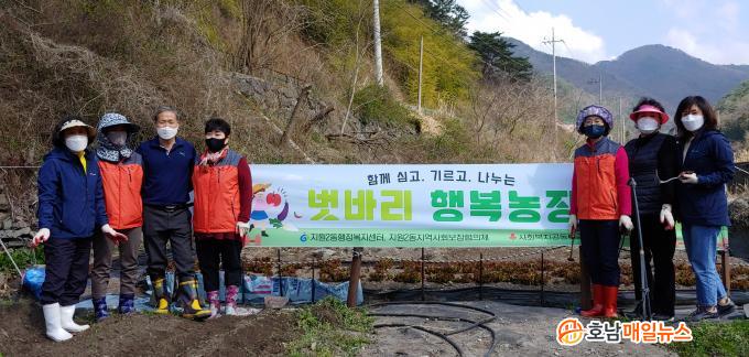Áö»çÇùÀº ¸Å³â °ü³» ¾î¸£½Åµé°ú ³¢´Ï¸¦ °Å¸¦ ¿ì·Á°¡ ÀÖ´Â µ¹º½ ÀÌ¿ô¿¡°Ô ¹þ¹Ù¸® Çູ³óÀå¿¡¼ ¼öÈ®ÇÑ ¹èÃß, °¨ÀÚ, ¿¹« µîÀ» Àç·á·Î ¸¸µç °èÀý ¹ÝÂùÀ» Àü´ÞÇϰí ÀÖ´Ù.