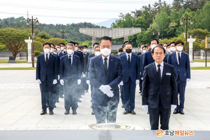 ¼ÛÁ¾¿í ±¤ÁÖÀºÇàÀåÀº ÇÔ²²ÇÑ ÀÓÁ÷¿øµé¿¡°Ô ¡°5¡¤18 ±¤ÁÖ¹ÎÁÖȿÀÇ ¼þ°íÇÑ Á¤½ÅÀ» ÀØÁö ¸»°í, ¹ÎÁÖÁÖÀÇÀÇ ÂüµÈ Àǹ̸¦ µÇ»õ±âÀÚ¡±°í °Á¶Çϸç, ¡°±¤ÁÖ¡¤Àü³² ´ëÇ¥ÀºÇàÀ¸·Î¼ 5¡¤18 °øµ¿Ã¼ Á¤½ÅÀ» °è½ÂÇÏ¿© Áö¿ª¹Î°úÀÇ »ó»ýÀ» À§ÇØ Àû±Ø ³ë·ÂÇϰڴ١±°í ¸»Çß´Ù.