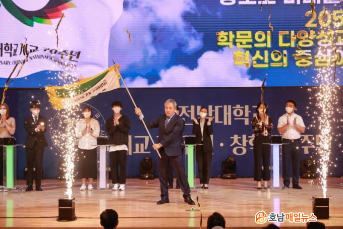 Àü³²´ë´Â °³±³ 70ÁÖ³â ¹× Ã¢ÇÐ 113ÁÖ³âÀ» ¸Â¾Æ 6¿ù 8ÀÏ ¿ÀÈÄ 5½Ã ¿¸° ±â³ä½Ä¿¡¼ °³±³ 100ÁÖ³âÀÌ µÇ´Â ¿À´Â 2052³â¿¡´Â Çй®ÀÇ ´Ù¾ç¼º°ú âÀǼºÀ¸·Î Çõ½ÅÀÇ Áß½ÉÀÌ µÇ´Â ´ëÇÐÀ¸·Î ÈûÂ÷°Ô µµ¾àÇÒ °ÍÀ» ´ëÇÐ ±¸¼º¿ø ¸ðµÎ°¡ ´ÙÁüÇÏ´Â ¡®¹Ì·¡ ¼±¾ð¡¯¿¡ ³ª¼°í, ´Ù¼¸ °¡Áö ½ÇÇàÀü·«(GREEN)À» Á¦¾ÈÇß´Ù.