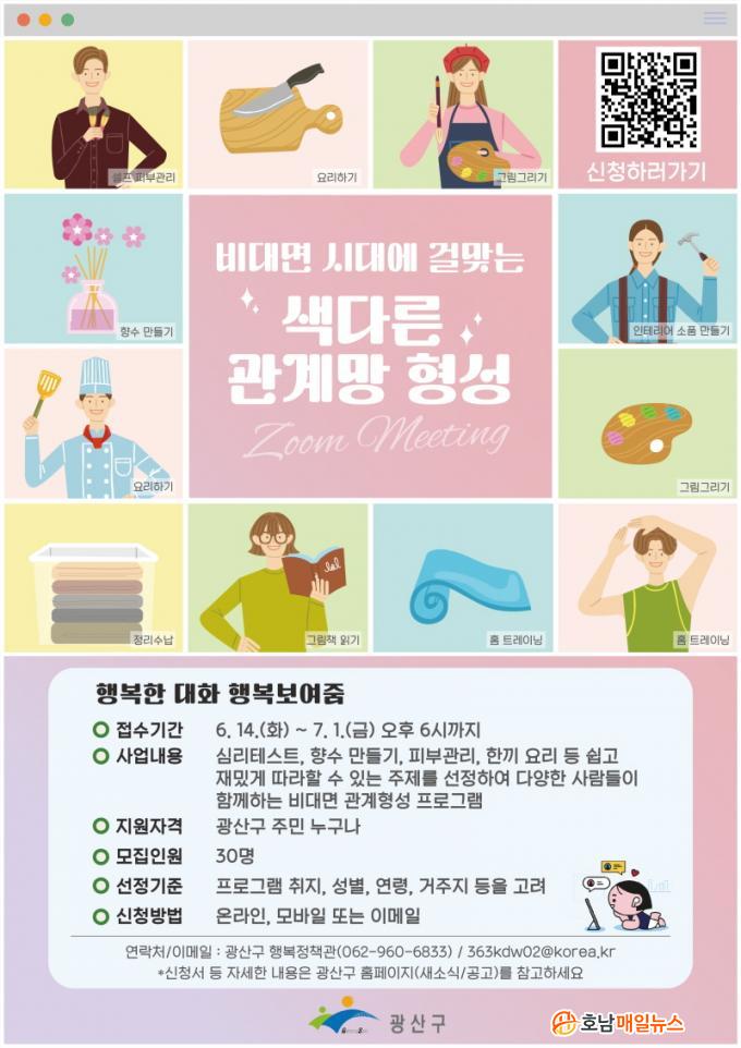 Á¢¼ö ±â°£Àº 14ÀϺÎÅÍ 7¿ù1ÀϱîÁöÀ̸ç, ±¤»ê±¸¿¡ °ÅÁÖÇÏ´Â ÁֹΠÃÑ 30¸íÀ» ¸ðÁýÇÒ ¿¹Á¤ÀÌ´Ù. ½Åû ¹æ¹ýÀº ±¤»ê±¸ °ø½Ä SNS Âü¿© ¸µÅ©¿¡ Á¢¼ÓÇϰųª, ±¤»ê±¸ ´©¸®Áý ¡®»õ¼Ò½Ä¡¯¿¡¼ ½Åû¼¸¦ ¹Þ¾Æ ÀÛ¼º ÈÄ À̸ÞÀÏ(363kdw02@korea.kr)·Î Á¦ÃâÇÏ¸é µÈ´Ù. ÀÚ¼¼ÇÑ »çÇ×Àº ±¤»ê±¸ ÇູÁ¤Ã¥°ü(062-960-6833)¿¡ ¹®ÀÇÇÏ¸é µÈ´Ù.