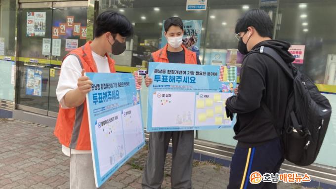 ¿î³²µ¿Àº Áö³ 20ÀϺÎÅÍ 22ÀϱîÁö dz¿µÁ¤Ãµ »êÃ¥·Î, ¾ÆÆÄÆ® »ó°¡ ÀÏ´ë¿¡¼ Áö¿ª ȯ°æ°³¼± ºÐ¾ß ¿ì¼±¼øÀ§ ¼±Á¤À» À§ÇØ ÁÖ¹ÎÀ» ´ë»óÀ¸·Î ÇöÀåÅõÇ¥¸¦ ½Ç½ÃÇß´Ù. ¾Õ¼ ¿î³²µ¿Àº ÁÖ¹ÎÀÌ Ã¼°¨Çϴ ȯ°æ °³¼±À» À§ÇØ ¡®ÇÔ²²ÇØ¿ä, ¿î³² ȯ°æ care(Äɾî)¡¯¸¦ ¼º°ú°ü¸® ÁöÇ¥·Î »ï°í, ¾²·¹±â ¹®Á¦, ¹æ¿ª, ²É ½ÄÀç µî ÁÖ¿ä °úÁ¦¸¦ ¸¶·ÃÇß´Ù.