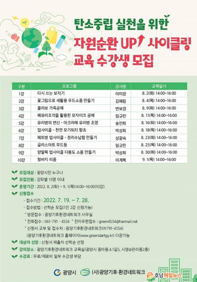 ¾÷»çÀÌŬ¸µÀº ÀçȰ¿ëǰÀ̳ª ¹ö·ÁÁö´Â ÀÚ¿ø¿¡ µðÀÚÀÎ ¶Ç´Â Ȱ¿ëµµ¸¦ ´õÇØ °¡Ä¡ ÀÖ´Â ´Ù¾çÇÑ Á¦Ç°À¸·Î Àçź»ý½ÃŰ´Â °ÍÀ» ¸»ÇÑ´Ù.À̹ø ±³À°ÇÁ·Î±×·¥Àº 8¿ù 2ÀÏ~9¿ù 1ÀÏ È, ¸ñ¿äÀÏ 2½Ã°£¾¿ 10Â÷·Ê¿¡ °ÉÃÄ ¹«·á·Î ¿î¿µµÇ°í ÀϺΠÇÁ·Î±×·¥Àº Àç·áºñ ÀϺΰ¡ ÀںδãÀ¸·Î ÁøÇàµÈ´Ù.