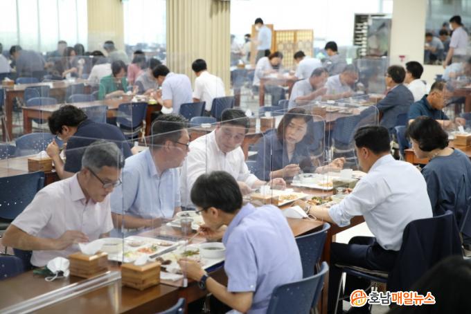 ½Å¹ÎÈ£ À§¿øÀå µî ±âȹÇàÁ¤À§¿øÈ¸ À§¿øµéÀº ±¸³»½Ä´ç¿¡ µû·Î ÀÚ¸®¸¦ ¸¶·ÃÇÏÁö ¾Ê°í Á÷¿øµé°ú ÀÚ¿¬½º·´°Ô ½Ä»çÇÏ¸ç µµÃ» °ø¹«¿øµéÀÇ º¹ÁöÇâ»óÀ» À§ÇÑ ÀǰßÀ» ¼ö·ÅÇß´Ù.