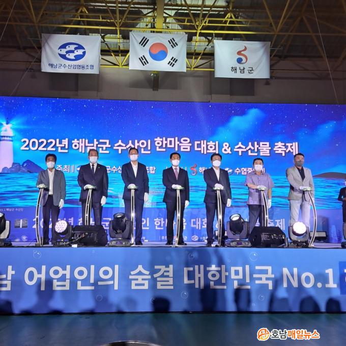 ¡º2022 ÇØ³²±º ¼ö»êÀÎ ÇѸ¶À½´ëȸ¡»´Â ÇØ³²±º¼öÇùÀÌ ÁÖÃÖÇÏ¿© ¡®Çس²±º ¼ö»ê¼Òµæ 1Á¶¿ø ¸ñÇ¥¡¯¶ó´Â ½½·Î°Ç ¾Æ·¡, Áö¿ª ¼ö»ê¾÷¹ßÀü ±â¿ø ¹× ÇØ³²±º ¼ö»êÀÎÀ¸·Î½á ÀÚ±à½É °íÃë¿Í ±ÇÀÍ ½ÅÀåÀ» µµ¸ðÇϱâ À§ÇØ ¸¶·ÃÇÑ ¼ö»êÀÎ ÈÇÕÀÇ ÀåÀ¸·Î, ÇØ³²±º°ú ¼öÇùÁß¾Óȸ°¡ ÈÄ¿øÇÑ °¡¿îµ¥ ¿·È´Ù.