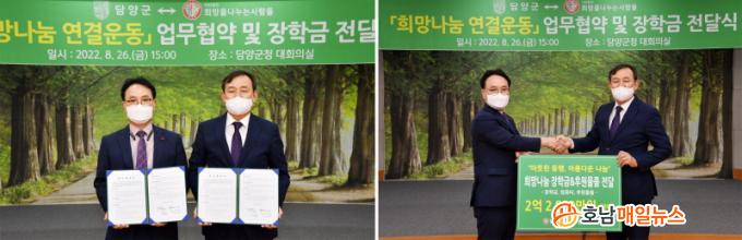 À̹ø Çù¾àÀ» ÅëÇØ (»ç)Èñ¸ÁÀ»³ª´©´Â»ç¶÷µé¿¡¼´Â ´ã¾ç±º¿¡ ÇâÈÄ 2³â°£ Àú¼Òµæ ¾Æµ¿ 20¸í¿¡°Ô ¸Å´Þ 5¸¸ ¿øÀÇ ÀåÇбݰú 4¸í ¾Æµ¿¿¡°Ô ÄÄÇ»ÅÍ Áö¿ø, ´ã¾ç±ºº¹ÁöÀç´Ü¿¡´Â 2¾ï ¿ø »ó´çÀÇ »ýÇÊǰÀ» Áö¿øÇØ ÃÑ 2¾ï 2880¸¸ ¿ø »ó´çÀ» ÈÄ¿øÅ°·Î Çß´Ù.