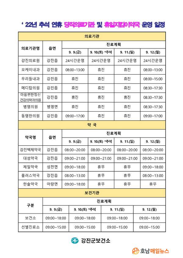 ¿¬ÈޱⰣ º¸°Ç¼Ò¿¡¼´Â ºñ»óÁø·á »óȲ½ÇÀ» ¿î¿µÇØ ´çÁ÷ÀÇ·á±â°ü ¹× ÈÞÀÏÁöÅ´ÀÌ ¾à±¹À» ¾È³»Çϰí, ¸ÅÀÏ ºñ»óÁø·á(09:00¡18:00)¿Í ¼±º°Áø·á¼Ò(09:00¡15:00)¸¦ ¿î¿µÇØ ±º¹ÎµéÀÇ ºÒÆíÀ» ÃÖ¼ÒÈÇÒ ¹æÄ§ÀÌ´Ù.