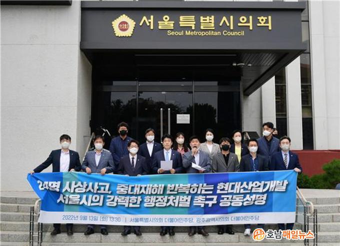¼¿ïƯº°½ÃÀÇȸ¿Í ±¤ÁÖ±¤¿ª½ÃÀÇȸ ´õºÒ¾î¹ÎÁÖ´ç ÀÇ¿ø Àϵ¿Àº 13ÀÏ ¿ÀÈÄ 1½Ã 30ºÐ ¼¿ïƯº°½ÃÀÇȸ º»°ü ¾Õ¿¡¼ ¹ßÇ¥ÇÑ °øµ¿¼º¸í¼¸¦ ÅëÇØ ¡®ºÒ¹ý ºÎ½Ç °ø»ç·Î ¼ÒÁßÇÑ ±¹¹ÎÀÇ »ý¸íÀ» ¾Ñ¾Æ°£ Çö´ë»ê¾÷°³¹ß¿¡ ´ëÇØ¼ µî·Ï¸»¼ÒóºÐ µîÀÇ °·ÂÇÑ ÇàÁ¤Á¶Ä¡¸¦ ³»·Á ÁÙ °Í¡¯À» ¼¿ï½Ã¿¡ Ã˱¸Çß´Ù.