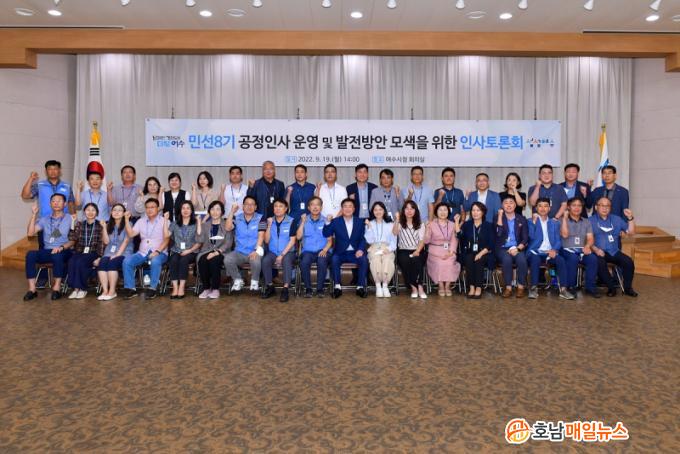 ¹Î¼± ¿©¼ö½Ã Ãâ¹ü ÀÌÈÄ ÃÖÃÊ·Î °³ÃֵǴ À̹ø ÀλçÅä·Ðȸ¿¡¼ Âü¼®ÀÚµéÀº Á÷·Äº° Àλç°íÃæ°ú °ÇÀÇ»çÇ× µîÀ» ÀÚÀ¯·Ó°Ô ÅäÀÇÇÏ°í °ø°¨´ë¸¦ È®»êÇÏ´Â ½Ã°£À» °¡Á³´Ù. ƯÈ÷ ¼Ò¼öÁ÷·Ä »ç¹«°ü ½ÂÁøÀÎ»ç ¾È¹è, 6±Þ ¹«º¸Á÷ Â÷â º¸Á÷ ºÎ¿© ½Ã Çö Á÷±Þ ±Ù¹«¿¬¼ö ¹Ý¿µ µîÀÌ ÁÖ¿ä °ÇÀÇ»çÇ×À¸·Î ³íÀǵƴÙ.
