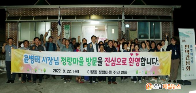Àü³² ³ªÁֽô Áö³ 22ÀÏ ¿ÀÈÄ 8½Ã ¿î°îµ¿ Á¤·®¸¶À»È¸°ü¿¡¼ À±º´Å ½ÃÀå°ú ¸¶À»ÁֹΰúÀÇ °ÝÀÇ ¾ø´Â ´ëÈ ÀÚ¸®ÀÎ ¹Î¹Ú°£´ãȸ¸¦ °¡Á³´Ù°í 23ÀÏ ¹àÇû´Ù.
