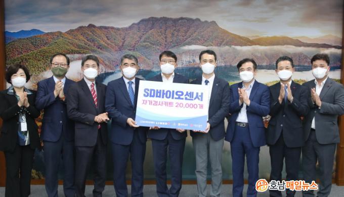 SD¹ÙÀÌ¿À¼¾¼ÀÇ ÀÚ°¡°Ë»çŰƮ´Â Áö³ÇØ 4¿ù ½ÄǰÀǾàǰ¾ÈÀüóÀÇ Á¤½Ä »ç¿ë Çã°¡¿Í, ¼¼°èº¸°Ç±â±¸(WHO) ±ä±Þ ½ÂÀÎÀ» ¹Þ¾Ò´Ù. ÀÚ°¡°Ë»çŰƮ´Â 15ºÐ ¾È¿¡ ÇöÀå¿¡¼ °Ë»ç °á°ú¸¦ ºü¸£°Ô È®ÀÎÇÒ ¼ö ÀÖ°í, Ưº°ÇÑ Àåºñ ¾øÀÌ »ç¿ë °¡´ÉÇØ ¼±º°°Ë»ç¿ëÀ¸·Î Ȱ¿ëÇϸé È¿À²¼ºÀÌ ³ô´Ù.