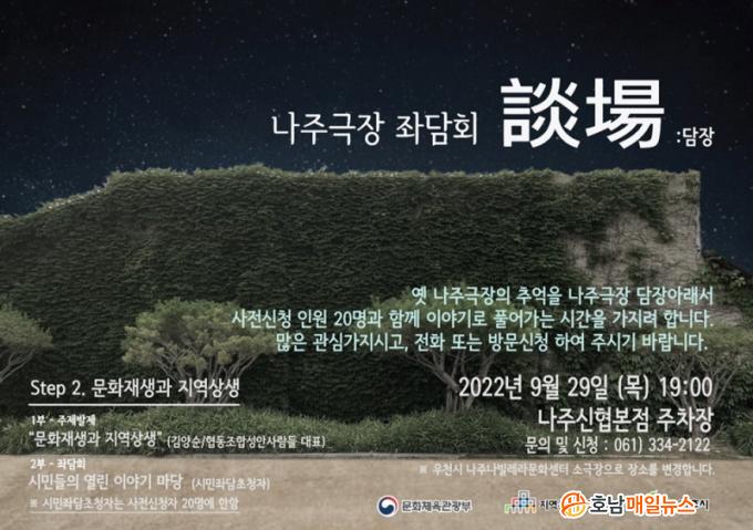 Áö³ 7¿ù¿¡ ÀÌÀº À̹ø Á´ãȸ´Â ¡®¹®ÈÀç»ý°ú Áö¿ª »ó»ý¡¯À̶ó´Â ÁÖÁ¦·Î ¿¾ ³ªÁÖ±ØÀå µÚÆí ³ªÁÖ½ÅÇùº»Á¡ ¾ß¿Ü ÁÖÂ÷Àå¿¡¼ ÁøÇàµÈ´Ù.