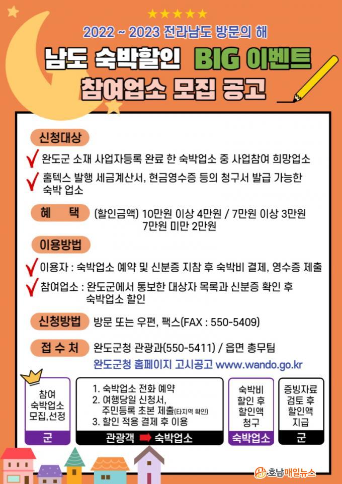 ¡¸³²µµ ¼÷¹Ú ÇÒÀÎ BIG À̺¥Æ® Áö¿ø »ç¾÷¡¹Àº ±¤ÁÖ ¹× Àü³² ¿Ü ÁÖ¼ÒÁö¸¦ µÐ °ü±¤°´ÀÌ ¿Ïµµ±º ¼÷¹Ú¾÷¼Ò¸¦ ÀÌ¿ëÇÒ °æ¿ì ¼÷¹Úºñ ÀϺθ¦ ÇÒÀÎÇØ ÁÖ´Â »ç¾÷ÀÌ´Ù.