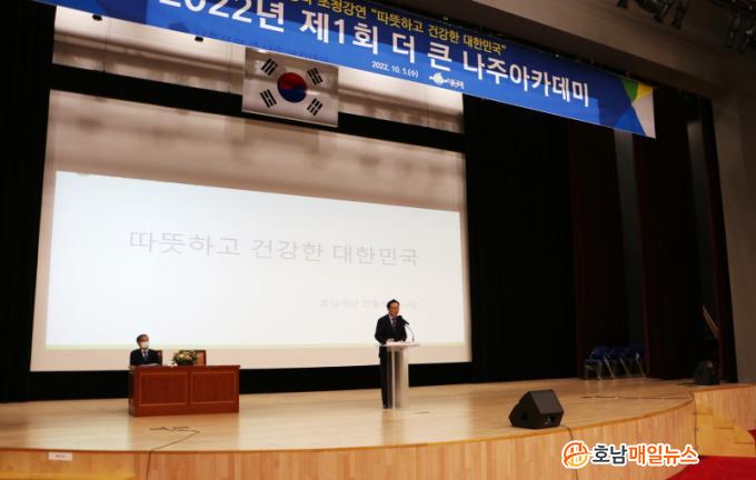 ±è Àü ÃѸ®´Â ³¡À¸·Î ¡°°æÁ¦Àû ¼ºÀå»Ó¸¸ ¾Æ´Ï¶ó Á¤½ÅÀû Ãø¸éÀÇ °Ç°ÇÏ°í ¼º¼÷ÇÑ ±¹¹Î ÀǽÄÀ» °®´Â °ÍÀÌ¾ß ¸»·Î ´õ ³ªÀº ³ªÁÖ, µû¶æÇÏ°í °Ç°ÇÑ ´ëÇѹα¹ÀÌ ³ª¾Æ°¡¾ßÇÒ ¹Ù¶÷Á÷ÇÑ ¹æÇ⡱À̶ó¸ç °¿¬À» ¸¶¹«¸®Çß´Ù.