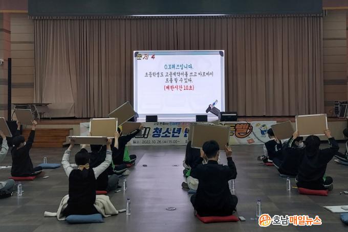 Âü°¡ û¼Ò³âµéÀº Àαǰú °ü·ÃµÈ ÀϹݻó½Ä ¹× Çö¾È À̽´¸¦ ¹ÙÅÁÀ¸·Î OX, °´°ü½Ä, ÁÖ°ü½Ä µîÀ¸·Î ÃâÁ¦µÈ ¹®Á¦¸¦ Ç®¾ú´Ù. Áß°£¿¡´Â ·¹Å©¸®¿¡À̼ǵµ ÁøÇàµÆ´Ù.