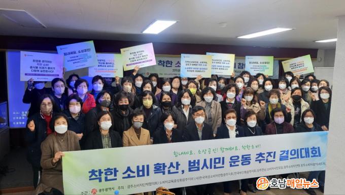 [È£³²¸ÅÀÏ´º½º] ±¤ÁÖ±¤¿ª½Ã¿Í ±¤ÁÖ¼ÒºñÀÚº¸È£´ÜüÇùÀÇȸ´Â 27ÀÏ ±¤ÁÖ¿©¼º´Üüȸ°ü¿¡¼ °í¹°°¡, °í±Ý¸® ¹Î»ý´ëÃ¥ÀÇ ÀÏȯÀ¸·Î ¡®2022³â ÂøÇÑ ¼ÒºñÈ®»êÀ» À§ÇÑ ¹ü½Ã¹Î¿îµ¿°áÀÇ´ëȸ¡¯¸¦ ¿°í ¿ì¸®³ó»ê¹°»çÁÖ±â, ±¤ÁÖ°ø°ø¹è´Þ¾Û°ú »ó»ýÄ«µå »ç¿ëÇϱâ, °ñ¸ñ»ó±Ç µî ÂøÇѰ¡°Ý¾÷¼Ò ÀÌ¿ëÇϱ⠵îÀ» ´ÙÁüÇß´Ù.