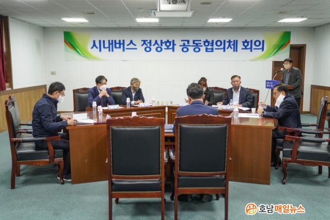 °øµ¿ÇùÀÇü´Â ½Ã³»¹ö½º ¹®Á¦ÀÇ Á¶¼ÓÇÑ ÇØ°áÀ» À§ÇØ ¡°¸ñÆ÷½Ã, ¸ñÆ÷½ÃÀÇȸ, ¹ö½ºÈ¸»ç ´ëÇ¥, ³ëµ¿Á¶ÇÕ ´ëÇ¥, °í¿ë³ëµ¿ºÎ ¸ñÆ÷Áöû µî 5ÀÚ ´ëÇ¥ÀÚ ´ëȸ¦ ÅëÇØ ÇØ°á¹æ¾ÈÀ» ¸ð»öÇØ¾ß ÇÑ´Ù¡±´Â µ¥¿¡ Àü¿ø ÀÇ°ß ÀÏÄ¡·Î °ÇÀÇÇß´Ù.