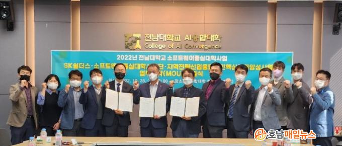 Àü³²´ë SWÁ߽ɴëÇлç¾÷´Ü(´ÜÀå ±è°æ¹é ±³¼ö. ¼ÒÇÁÆ®¿þ¾î°øÇаú)Àº Áö³ 10¿ù 28ÀÏ AIÀ¶ÇÕ´ëÇРȸÀǽǿ¡¼ SK½¯´õ½º(ÁÖ), Àü³²´ë Áö¿ªÀü·«»ê¾÷À¶ÇÕº¸¾ÈÇÙ½ÉÀÎÀç¾ç¼º»ç¾÷´Ü°ú ¡®ÀÎÅÏ½Ê ¹× »êÇÐÇù·Â¡¯¿¡ ³ª¼±â·Î Çù¾àÇß´Ù.