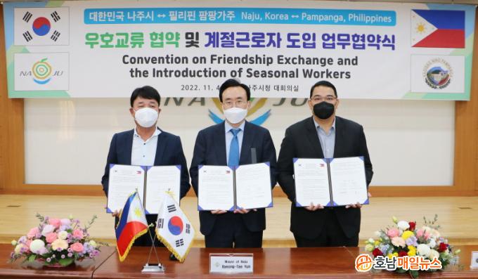 ³ªÁÖ½Ã(½ÃÀå À±º´ÅÂ)´Â Áö³ 4ÀÏ ½Ãû»ç ´ëȸÀǽǿ¡¼ Çʸ®ÇÉ ÆÊÆÎ°¡ÁÖ ¹× ÆÊÆÎ°¡ÁÖ ±¸¾Æ±¸¾Æ¡¤»ê·çÀ̽º½Ã(ã¼)¿Í ¡®¿ìÈ£±³·ù Çù·Â ¹× ¿Ü±¹ÀÎ °èÀý±Ù·ÎÀÚ ¾÷¹«Çù¾à¡¯À» ü°áÇß´Ù°í 6ÀÏ ¹àÇû´Ù.