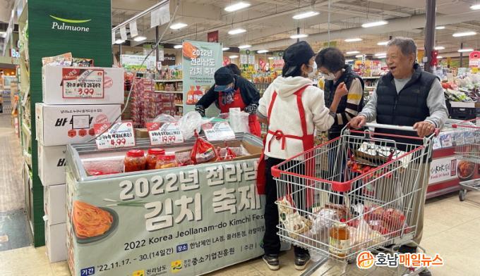 Áö³ 9¿ù ±è¿µ·Ï Àü³²µµÁö»ç°¡ ¹Ì±¹ ¼ø¹æ ½Ã ÇöÁö »ó¼³ ÆÇ¸ÅÀåÀ» ¹æ¹®ÇØ Àü¶óµµ ±èÄ¡ÀÇ ¼¼°èȸ¦ À§ÇÑ Àû±ØÀûÀÎ ÇØ¿Ü ÆÇÃËÇà»ç¸¦ ÁÖ¹®ÇÏ¸é¼ ¼º»çµÈ À̹ø Çà»ç´Â ·Î½º¾ØÁ©·¹½º(LA) Áö¿ª »ó¼³ ÆÇ¸ÅÀåÀÎ Çѳ²Ã¼ÀÎ ·Î½º¾ØÁ©·¹½ºÁ¡‧Ç÷¯Æ°Á¡‧Åä·£½ºÁ¡‧µ¨¶ó¸ðÁ¡ µî 4°³ ¸ÅÀå¿¡¼ ±èÄ¡ ´ã±×±â ½Ã¿¬À» Çϰí, Àü³²»ê ±èÄ¡ ¾ç³ä°ú ±¹³»»ê ±èÀå Àç·á¸¦ ¼±º¸ÀÌ¸ç ´ë´ëÀû ÆÇÃËÇà»ç¸¦ ÁøÇàÇÑ´Ù.