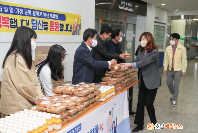 °¡Á·Ä£È Áö¿ø»ç¾÷Àº ÀÏ¡¤°¡Á¤ ¾ç¸³ Á¦µµ¿¡ ´ëÇÑ ´Ù¾çÇÑ »ç¾÷, ÄÁ¼³ÆÃ, Á¤º¸ Á¦°ø, È«º¸ µîÀ» ÅëÇØ ±Ù·ÎÀÚ°¡ Àϰú °¡Á¤»ýȰÀ» Á¶È·Ó°Ô º´ÇàÇÒ ¼ö ÀÖµµ·Ï Áö¿øÇÏ´Â »ç¾÷ÀÌ´Ù. ƯÈ÷, Äڷγª19 °ü·Ã ¾÷¹«·Î Àå±â°£ ÇǷΰ¡ ½×¿© ¿Â Á÷¿øµéÀ» À§ÇØ È«º¸¹°Ç°ÀÎ »÷µåÀ§Ä¡¿Í À½·á¸¦ Àü´ÞÇØ ¸¹Àº È£ÀÀÀ» ¾ò¾ú´Ù.