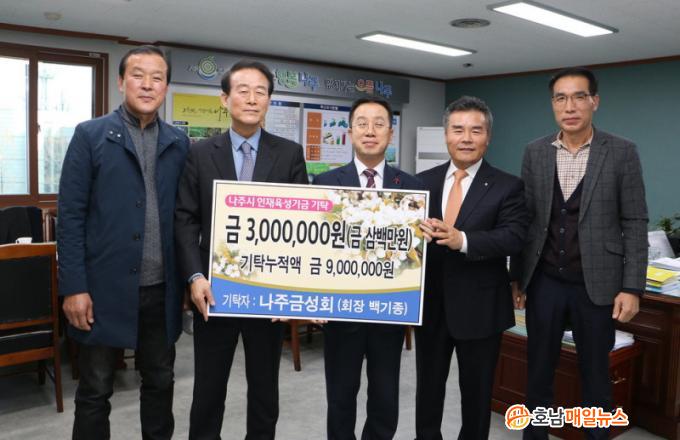 2009³â °á¼ºµÈ ³ªÁÖ ±Ý¼ºÈ¸´Â Áö³ 3³â °£ ÃÑ 900¸¸¿øÀÇ ÀÎÀç À°¼º±â±ÝÀ» ³ªÁÖ±³À°ÁøÈïÀç´Ü¿¡ ±âŹÇßÀ¸¸ç ³ªÁÖ¹è, ³ªÁÖ½Ò µî °íÇâ ³ó¡¤Æ¯»êǰ ÆÇ·Î °³Ã´, ¾î·Á¿òÀ» °Þ´Â °íÇâ »ç¶÷µéÀ» À§ÇÑ ¼º±Ý ±âŹ µî ´Ù¾çÇÑ ¾ÖÇâ Ȱµ¿À» ÃßÁøÇØ¿À°í ÀÖ´Ù.