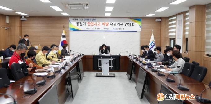 °£´ãȸ´Â ±º¹ÎµéÀÇ ¾ÈÀüÀ» Ã¥ÀÓÁö´Â Áøµµ±º, Áøµµ°æÂû¼, Áøµµ¼Ò¹æ¼, ¸ñÆ÷ÇØ°æ ÁøµµÆÄÃâ¼Ò °ü°èÀÚ 20¿©¸íÀÌ Âü¼®ÇØ ºÐ¾ßº° ¾ÈÀü»ç°í ´ëÃ¥À» ³íÀÇÇß´Ù.
