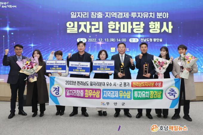 ¹«¾È±ºÀº À̹ø ½Ã»ó½Ä¿¡¼ ÀÏÀÚ¸®Ã¢Ãâ ÃÖ¿ì¼ö»ó, Áö¿ª°æÁ¦ Ȱ¼ºÈ ¿ì¼ö»ó, ÅõÀÚÀ¯Ä¡ Àå·Á»ó µî ¸ðµç ºÐ¾ß¿¡¼ ¼ö»óÇß°í, Àü ºÐ¾ß ¼ö»ó ½Ã¡¤±ºÀº ¹«¾È±º°ú ¿µ±¤±ºÀÌ À¯ÀÏÇϸç, ÀÏÀÚ¸®Ã¢Ãâ ¹× Áö¿ª°æÁ¦ Ȱ¼ºÈ ºÐ¾ß´Â À۳⿡ ÀÌÀº 2³â ¿¬¼Ó ¼ö»óÀÌ´Ù.