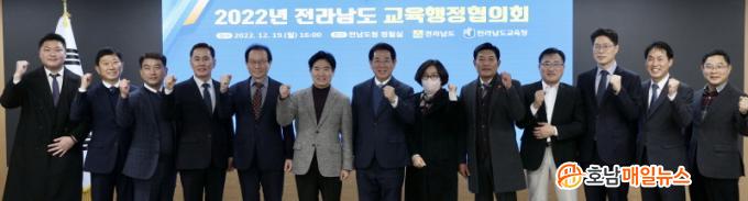 µÎ ±â°üÀº 19ÀÏ(¿ù) Àü³²µµÃ» Á¤Ã¶½Ç¿¡¼ ±è¿µ·Ï µµÁö»ç¿Í ±è´ëÁß ±³À°°¨À» ºñ·ÔÇÑ ÁÖ¿ä °£ºÎµé°ú ÇùÀÇȸ À§¿øÀÌ Âü¼®ÇÑ °¡¿îµ¥ ¡®2022³âµµ Àü¶ó³²µµ±³À°ÇàÁ¤ÇùÀÇȸ¡¯¸¦ °®°í, ¾Æµ¿¡¤Ã»¼Ò³â Áß Áö¿øÀÌ Àý½ÇÇÑ °èÃþ Áö¿ø°ú Áö¿ª Ư¼ºÀ» °í·ÁÇÑ ±³À° °È¸¦ À§ÇØ Çù·ÂÀÌ ÇÊ¿äÇÏ´Ù´Â µ¥ ÀνÄÀ» °°ÀÌÇß´Ù.