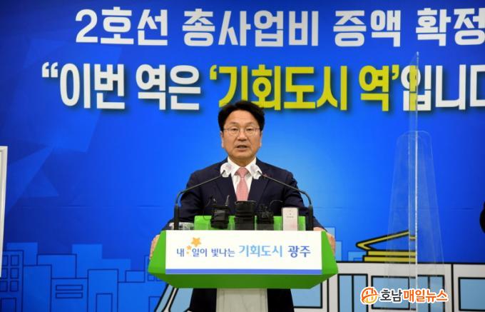 °±âÁ¤ ±¤ÁÖ±¤¿ª½ÃÀåÀº 29ÀÏ ¿ÀÈÄ ½Ãû ºê¸®Çη뿡¼ ±âÀÚȸ°ßÀ» ¿°í ¡°À̹ø ÃÑ»ç¾÷ºñ È®Á¤À¸·Î Áö¹æ ÃÖÃÊÀÇ ¼øÈ¯³ë¼± °Ç¼³ »ç¾÷ÀÎ µµ½Ãöµµ 2È£¼± »ç¾÷ÀÌ Á¤»ó ±Ëµµ¿¡¼ ÃßÁøÇÒ ¼ö ÀÖ°Ô µÆ´Ù¡±°í ¹àÇû´Ù.