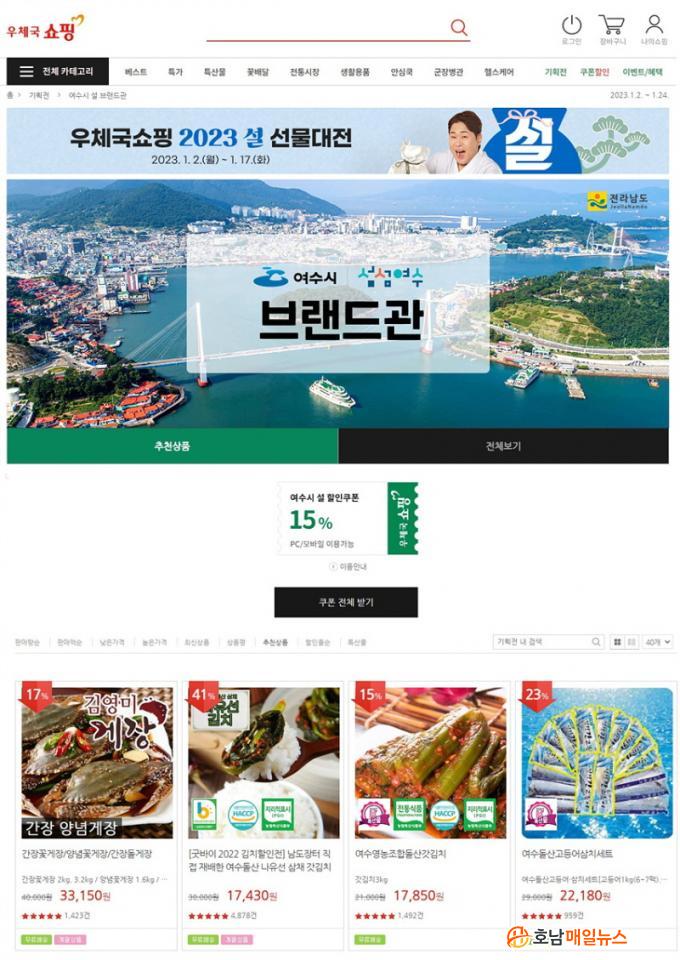 ¿©¼ö½Ã(½ÃÀå Á¤±â¸í)¿¡ µû¸£¸é ÀÌ´Þ 2ÀϺÎÅÍ 17ÀϱîÁö 16Àϰ£ ¿ìü±¹ ¼îÇθô ³» ¡®¿©¼ö½Ã ºê·£µå°ü¡¯¿¡¼ Áö¿ª ³ó¼öƯ»êǰÀ» ±¸¸ÅÇÏ´Â ¼ÒºñÀڵ鿡°Ô Àü ǰ¸ñ 15% ÇÒÀÎÄíÆùÀ» Á¦°øÇÏ´Â ¡®¼³¸ÂÀÌ ±âȹÀü¡¯ÀÌ ÁøÇàµÇ°í ÀÖ´Ù.