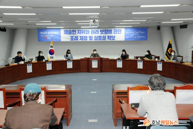 À̹ø Åä·Ðȸ´Â Áö³ ÇØ 9¿ù¡®¿¹¼úÀÎ ±Ç¸®º¸Àå¹ý¡¯½ÃÇà¿¡ µû¶ó ±¤Áֽÿ¡ ¸Â´Â ÀÚÄ¡¹ý±Ô ¸¶·ÃÀ» À§ÇØ ÇöÀåÀÇ ÀǰßÀ» ¼ö·ÅÇÏ°í ½ÇÈ¿¼ºÀ» ´ãº¸Å° À§ÇØ °¢°è Àü¹®°¡¸¦ ÃÊÃ»ÇØ ÁøÇàµÆ´Ù.