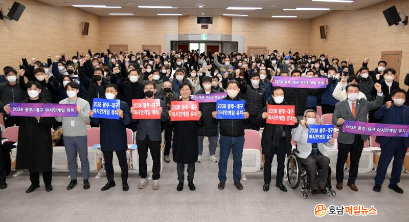 ÇÑÆí, ±¤Áֽô 2038 ¾Æ½Ã¾È°ÔÀÓ °øµ¿À¯Ä¡¸¦ À§ÇØ Áö³ 2021³â 5¿ù ±¹È¸¿¡¼ ±¤ÁÖ¡¤´ë±¸ ¾Æ½Ã¾È°ÔÀÓ °øµ¿À¯Ä¡ ¼±¾ð ¹× Çù¾à½ÄÀ» ½ÃÀÛÀ¸·Î, ÁغñÀ§¿øÈ¸ Ãâ¹ü, °øµ¿À¯Ä¡ ¹ü½Ã¹Î 100¸¸ ¼¸í¿îµ¿ ¹× 100¸¸ ´Þºû¼¸í Ä·ÆäÀÎ µîÀ» ÃßÁøÇß´Ù. ¶Ç È«º¸´ë»çÀÎ ¾È»ê ¼±¼öÀÇ Æ÷½ºÅ͸¦ Á¦ÀÛÇØ SNS µî¿¡ È«º¸Çϰí ÀÖ´Ù.