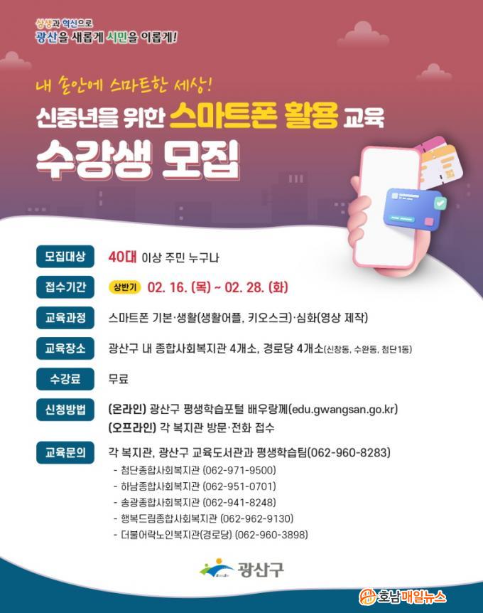 3¿ùºÎÅÍ 12ÀϱîÁö ÷´Ü‧Çϳ²‧¼Û±¤‧Çູµå¸² µî ±¤»ê±¸ Á¾ÇÕ»çȸº¹Áö°ü 4°³¼Ò¿Í °æ·Î´ç 4°³¼Ò¿¡¼ ÁøÇàÇÑ´Ù. 16ÀϺÎÅÍ 28ÀϱîÁö ±¤»ê±¸ Æò»ýÇнÀÆ÷ÅÐ ¡®¹è¿ì¶û²²¡¯(https://edu.gwangsan.go.kr)¸¦ ÅëÇØ ½ÅûÇÒ ¼ö ÀÖ´Ù. °¢ º¹Áö°ü¿¡ ¹æ¹®Çϰųª ÀüÈÇØ Á¢¼öÇÏ´Â °Íµµ °¡´ÉÇÏ´Ù. Á¤¿øÀº ÇÁ·Î±×·¥´ç 15¸íÀÌ¸ç ¼±Âø¼ø ¸¶°¨ÇÑ´Ù. ¼ö°·á´Â ¹«·á´Ù.