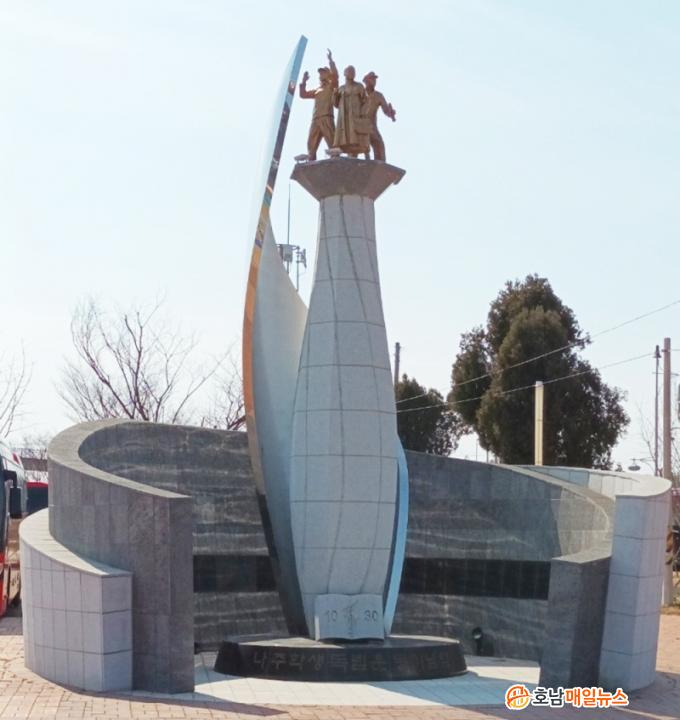 ±â³ä½Ä Àå¼ÒÀÎ ³ªÁÖÇлýµ¶¸³¿îµ¿°ü ±¤Àå¿¡´Â Çлýµ¶¸³¿îµ¿ Á¤½ÅÀ» ±â¸®°í Ã߸ðÇÏ´Â »ó¡¹°ÀÎ ±â³äžÀÌ Áö³ 2019³â °Ç¸³µÆ´Ù. ž ÃÖ»óºÎ¿¡´Â ³ªÁÖÇлýµ¶¸³¿îµ¿À» Ã˹߽ÃŲ Á¶¼±ÀÎ Çлý 3ÀÎÀÇ µ¿»óÀÌ ¼¼¿öÁ®ÀÖ´Ù.